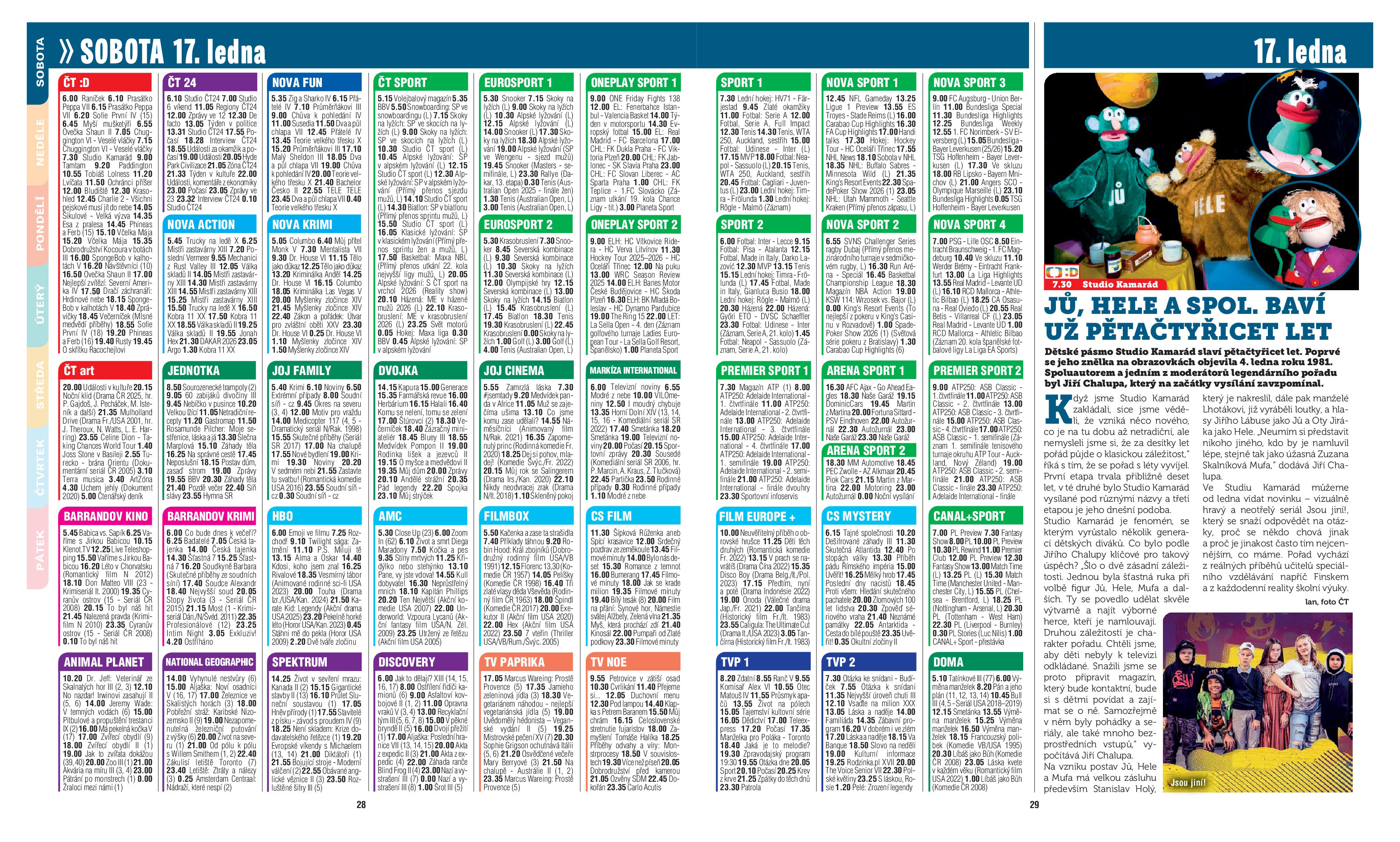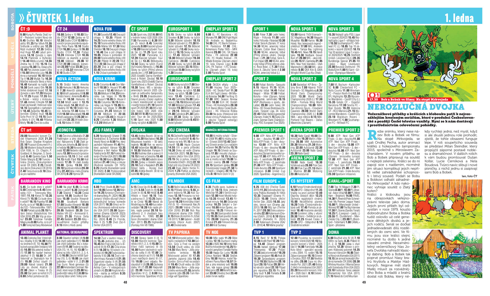 TV magazín je dlouhodobě nejčtenější a nejprodávanější titul v ČR. Každé pondělí přináší přehledně zpracované programy 63 televizních stanic. Nabízí čtenář… Celý popis
